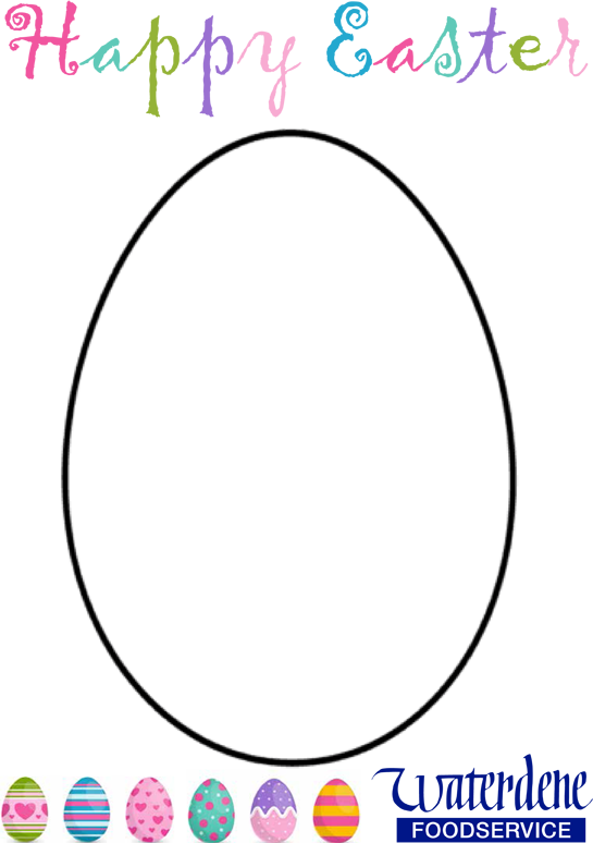 - Click the link above to download the Easter Egg template (PDF), print it out and ask your child/children to get creative! Please take a photo of the finished design and email it to info@waterdenefoodservice.co.uk